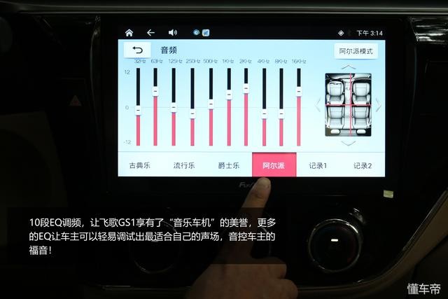 同时飞歌GS1的功率达4*50W,(一般原车主机功率在10-25W左右),功率越高能够推动喇叭的音质效果越好。再加上GS1在其音源部分做了产品升级,内置的DSP音效处理器解决了音源的问题,还有里面的10段EQ调频,更是将音乐的质感推升到极致!