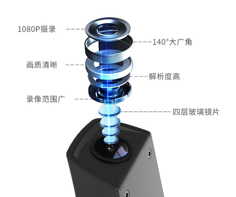 采用四层玻璃镜片1080P全高清摄像头,不玩虚标,140°真正大广角,200万像素,在行车过程清晰摄录每一个细节!图像解析度高,画质清晰,录像范围广。
